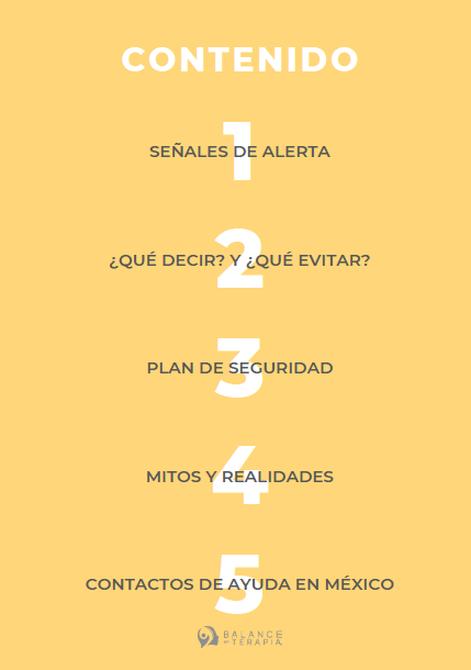 Balance en TerapiaUna guía clara, cercana y práctica para reconocer señales de alerta, saber qué decir y qué evitar, crear un plan de seguridad y conectar con ayuda inmediata en México. Ideal para ti, tu familia, amistades y docentes. Este material orienta y acompaña; no sustituye atención profesional.